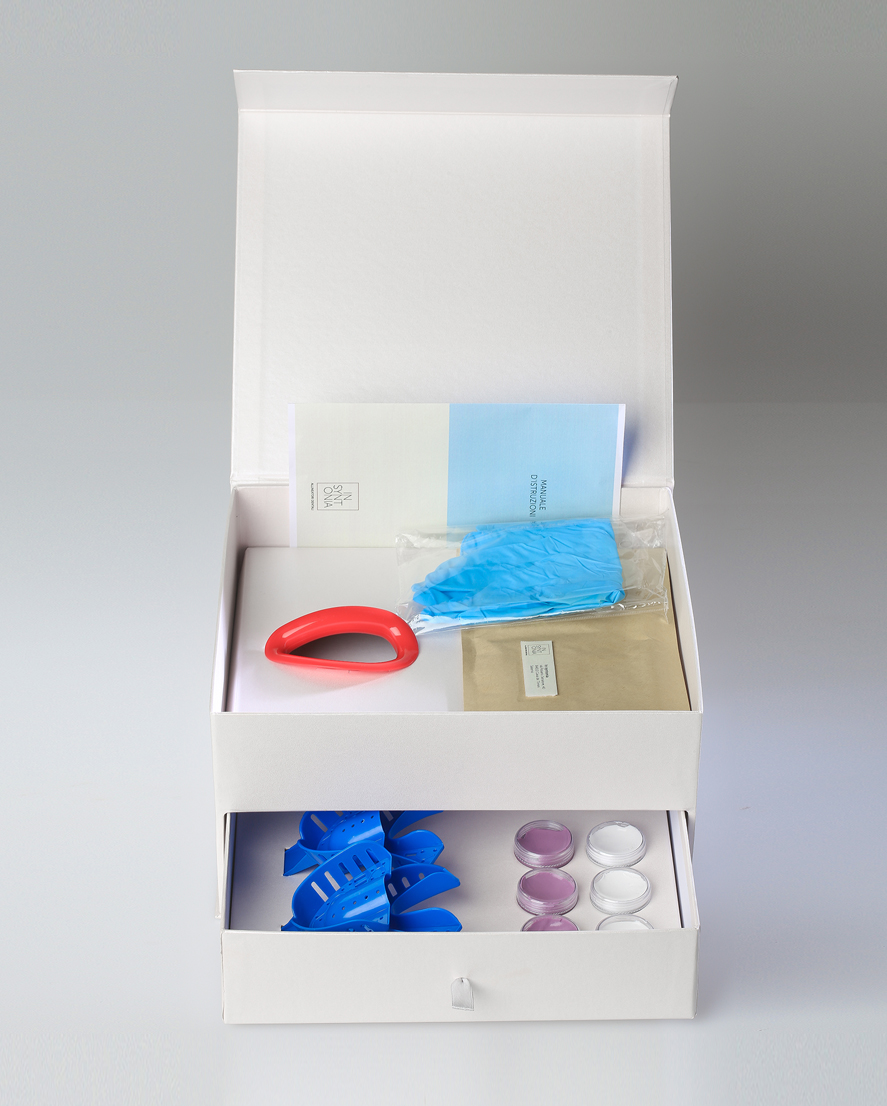 Richiedi il kit utile per generare la tua impronta dentale. Il kit comprende: Apribocca Smile,divaricatore per bocca che dovrai utilizzare per scattare foto delle arcate dentali, necessarie per costruire il giusto piano di trattamento personalizzato. 3 coppie di cucchiai per impronta dentale,dovrai scegliere a seconda delle dimensioni della tua bocca; per ogni coppia un cucchiaio è utile per il calco dell’arcata superiore ed un altro per l’arcata inferiore; Materiale da impronta biocompatibile, si tratta di due paste da amalgamare e modellare per ricoprire la coppia di cucchiai prima di prendere l’impronta; Guanti monouso; Guida illustrativa utile mostrare il processo da seguire per ottenere l’impronta dentale nel modo più semplice ed efficiente possibile; Busta pre-affrancata di trasporto, in questo modo ti basterà inserire all’interno della bustina apposita la coppia di cucchiai utilizzati, sui quali avrai generato il calco della tua impronta dentale, ed inviarlo.